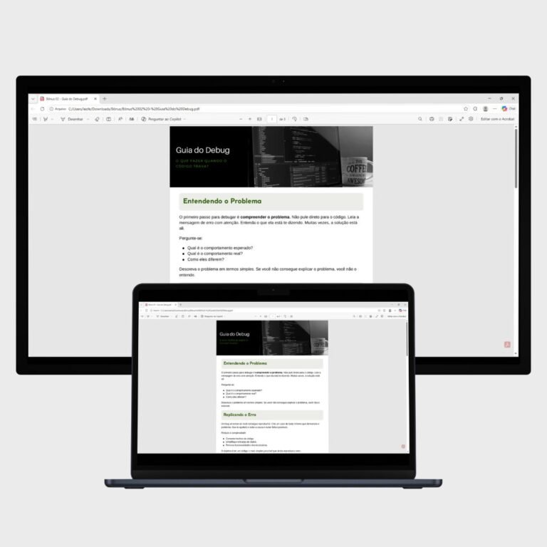 O que fazer quando o código quebra? Você vai aprender como analisar erros sem travar, como pensar na solução de forma lógica e como usar a IA para te ajudar a corrigir problemas mais rápido.